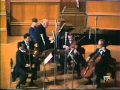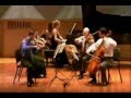 The third movement is a fantastic scherzo and trio, a highpoint of the work suitable for encore all by itself. In startling contrast to the poise and grandeur of the prelude and fugue, the scherzo dances with a rustic, wild abandon leering towards colorful parody and dark sarcasm so typical of Shostakovich. Less traditional is a second slow movement, a ponderous intermezzo placed between the scherzo and finale. Here is another face of Shostakovich so vivid throughout his work: an intimate sorrow that rises to a peak of anguish, a plodding sense of fate underlying a poignant song. But it is only a glimpse, an intermezzo that quickly fades into the relaxed tone of a breezy, uplifting conclusion. The finale has a clearly articulated classical sonata form with distinctive themes and a development section. A march-like feel is always just beneath the surface, occasionally swelling in grand gestures while, in between, a brief recollection of the intermezzo temporarily clouds an otherwise sunny end. Throughout the quintet, Shostakovich maintains a remarkable clarity of texture avoiding the dense or quasi-orchestral grandiosity towards which piano quintets tend. This is due in particular to a relatively restrained piano part and a fluid, dynamic ensemble where all five instruments are rarely active simultaneously.