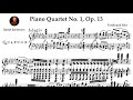 Piano Quartet No.1 in f minor, Op.13 was completed in 1808. It begins with an Adagio introduction in which several loud chords punctuate the proceedings. The main section, Allegro, has the aura of early Beethoven. The part writing is effective, but a fine pianist is required. The middle movement, Andantino, begins with a long solo in the piano, then the strings as a choir repeat the main subject, and again we hear early Beethoven. The finale, Rondo, allegretto moderato, concludes the work. Here, the thematic material is particularly compelling and memorable. Overall, if someone had told you that Beethoven had written this work in 1801, you would have believed them.