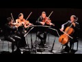 Nonetheless, the phrase "intimate voices" is perfect for chamber music and the quartet begins with an intimate exchange between violin and cello with a mournful, lonely melody that immediately establishes an introspective cast. The full ensemble joins spinning out a long theme in smooth step-wise motion that weaves long swatches of contrapuntal fabric in loose imitative threads eventually unified by strong, conclusive cadences. This tendency for elongated, spacious polyphony surfaces again in the finale giving a kind of symmetry to this five-movement work. Hardly a suite of independent movements, the structure has something of the "arch" form later used by Bartók and Shostakovich: the outer "bookends" embrace two scherzi (movements two and four) which frame a central slow movement of deep emotional impact, the true intimate core of the quartet. Thematic relationships further knit multiple movements into a cohesive unity.