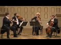 The second movement Vivace is a muscular scherzo that recalls Beethoven's great verve for orchestral string writing (especially the 7th symphony) crowned by the brilliant voice of the solo violin recalling either the sonatas or the concerto. The majority of the music is forged by splitting the quartet into halves with the keening violins together on top and the bold foundation of the lower strings in tandem underneath. But the gestures and the motion are fleet and agile, leaping gazelles racing across the vast expanse. The husky fiddle rasps out a sprightly dance while the strings bubble then burst into a rolling boil. A moment of classic Beethoven deconstruction throttles all momentum through a decrescendo and a breakdown into elemental particles before the scherzo resumes and finishes with a vigorous javelin thrust into the unforeseen future.