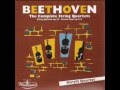 The first quartet of the three, Op. 59, No. 1 in F Major, curiously shares the same key as Beethoven's first quartet, Op. 18, No. 1, and his very last quartet, Op. 135. It is also the key of the luxurious Pastorale Symphony No. 6. Whatever the deeper reasons or implications of Beethoven's choice of key, all these works share a kindred warmth, a beneficent sense of well-being and grandeur that links them even across vast expanses of Beethoven's evolution. The quartet opens with an equally warm and welcome melody from the cello, a long rolling theme with an opening five-note motif that becomes a mantra saturating the musical discourse. The initial line rises from cello to violin to the full ensemble, still rising, until it rests and spills over into rich lines of milk and honey, the open harmonies of hunting horns, a definite evocation of pastoral fecundity. A lavish exposition travels even further through this celebration of joy until it winds around to the beginning, ready to repeat the long and joyous opening gambit. Beethoven begins what sounds like the repeat, but suddenly, in the words of Michael Steinberg, "throws a switch" and sends us off, without repeat, headlong into fresh territory. First comes a heartfelt, searching elaboration of the primary theme colored in so many new ways. Then, like a big dark cloud, a probing fugato of considerable proportions and disturbing affect. Eventually, the beneficence and grandeur return with a somehow more fully realized brilliance and a fleet coda concludes a vast quartet epic of boldly new proportions. The feint at the "expected" exposition repeat is small but revolutionary: here Beethoven is directly and magically altering our sense of time.