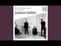 The third movement is a beautiful nocturne, an exotic dream of longing that, once again, brings Debussy's quartet to mind. Usually described as "rhapsodic" or "improvisatory", its musical wanderings are more theatrically calculated than they might first appear. A gentle, sensuous melody grows slowly out of the lower strings, interrupted throughout its gestation by short, isolated recurrences of themes from both the first and second movements like fleeting, displaced memories of the day that ultimately succumb to the heaviness of nightfall. A dark, insistent cello portends the further depths of night and, twice, the soft upper strings stir the quiet with a barely perceptible breath of wind in what might be the five most remarkable measures of the entire quartet. Out of the stillness, the thwarted theme finally swells into a passionate, sustained cry, a fever of swirling night visions that eventually subsides, spent, back into the folds of recurrence, the final sounds of the first movement theme soothing with a tender embrace of unfathomable peace.